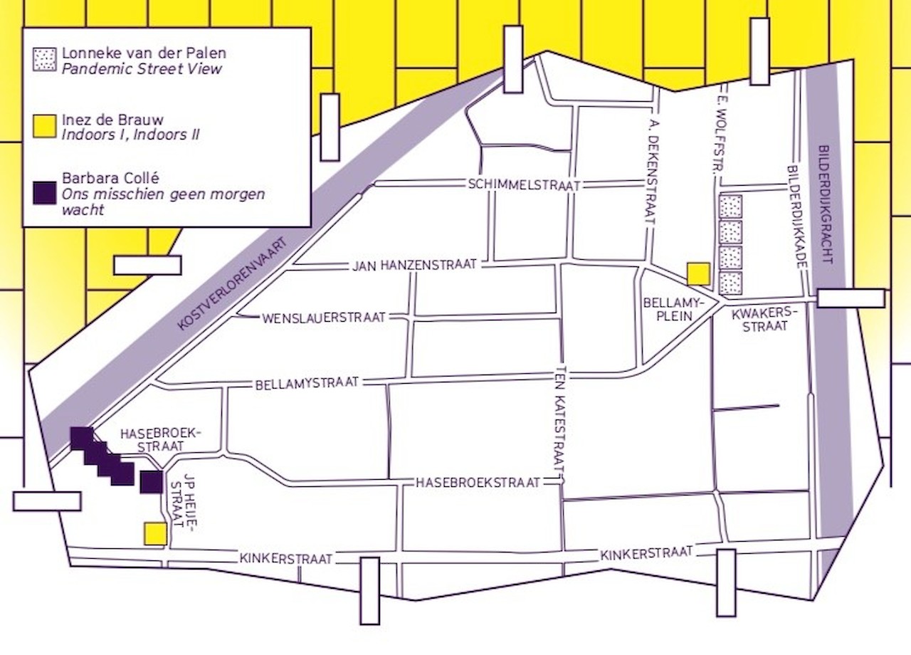Bellamy Kabinet nodigt je met veel plezier uit om de nieuwe tentoonstelling 'Dag en Nacht' te bekijken. Deze tentoonstelling is sinds woensdag te zien in de Bellamybuurt. Drie kunstenaars genaamd Lonneke van der Palen, Inez de Brauw en Barbara Collé hebben bijgedragen aan deze tentoonstelling. Via deze pagina op de website van Bellamy Kabinet kan je luisteren naar audio interviews met deze dames. Zij vertellen meer over de kunstwerken die dag en nacht te zien zijn in de vensters van de buurt. Dus, als je toch de deur uit moet voor boodschappen en je loopt per toeval langs, sta vooral even stil! Wil je meer weten? Bekijk dan de website van Bellamy Kabinet.