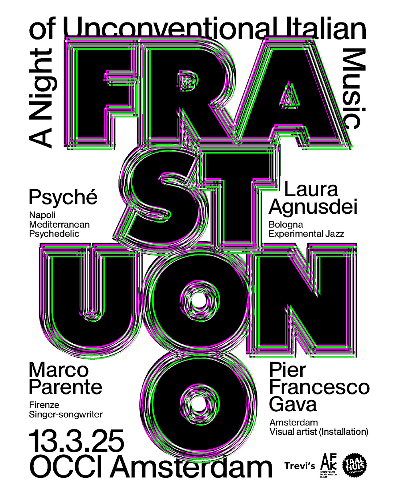First edition of Frastuono: a festival bringing Italy’s underground and experimental music to Amsterdam, shattering clichés about Italian music with bold, boundary-pushing sounds.