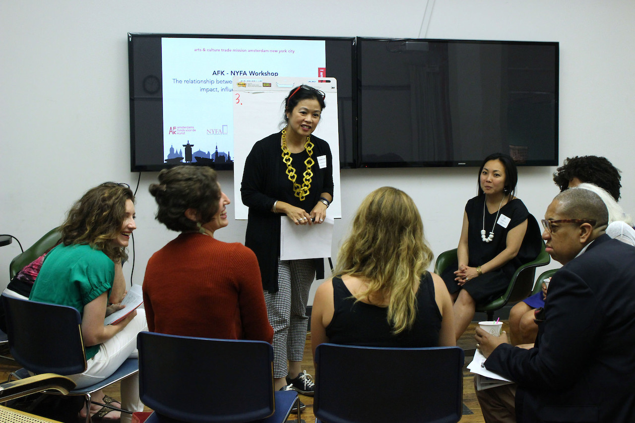 In september organiseerde het AFK twee werksessies over de toekomst van (inter)nationale kunst- en cultuurfinanciering. Eén sessie vond plaats in Amsterdam, de ander tijdens de cultuurmissie in New York in samenwerking met de New York Foundation for the Arts (NYFA). Tijdens de sessies spraken de deelnemers, allen professionals binnen de kunstsector, over financiering in een pluriforme samenleving. Hoe is de relatie tussen diverse (culturele, etnische en andere) communities en kunstfinanciering in beide steden?